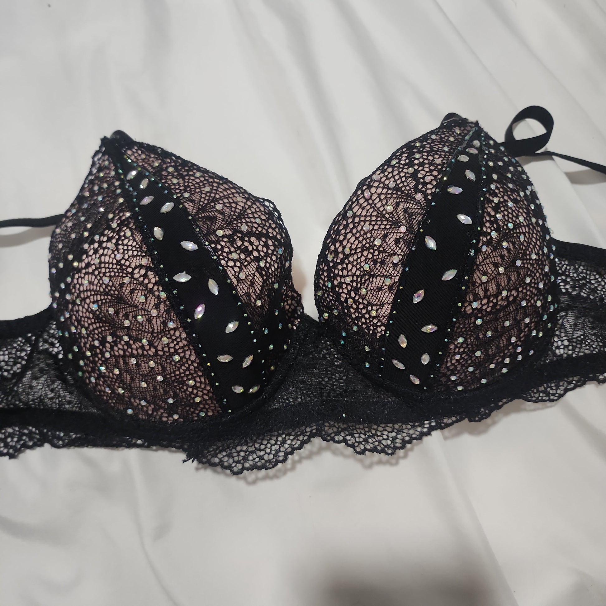 El sujetador 39B negro con cristales es todo lo que necesitas para un diseño único y elegante. Con su tamaño 38B y detalle de cristales, te asegura un gran soporte y comodidad. Además, su forro de crema te brinda una sensación suave y agradable en tu piel. Atrévete a destacar con este sujetador exclusivo.