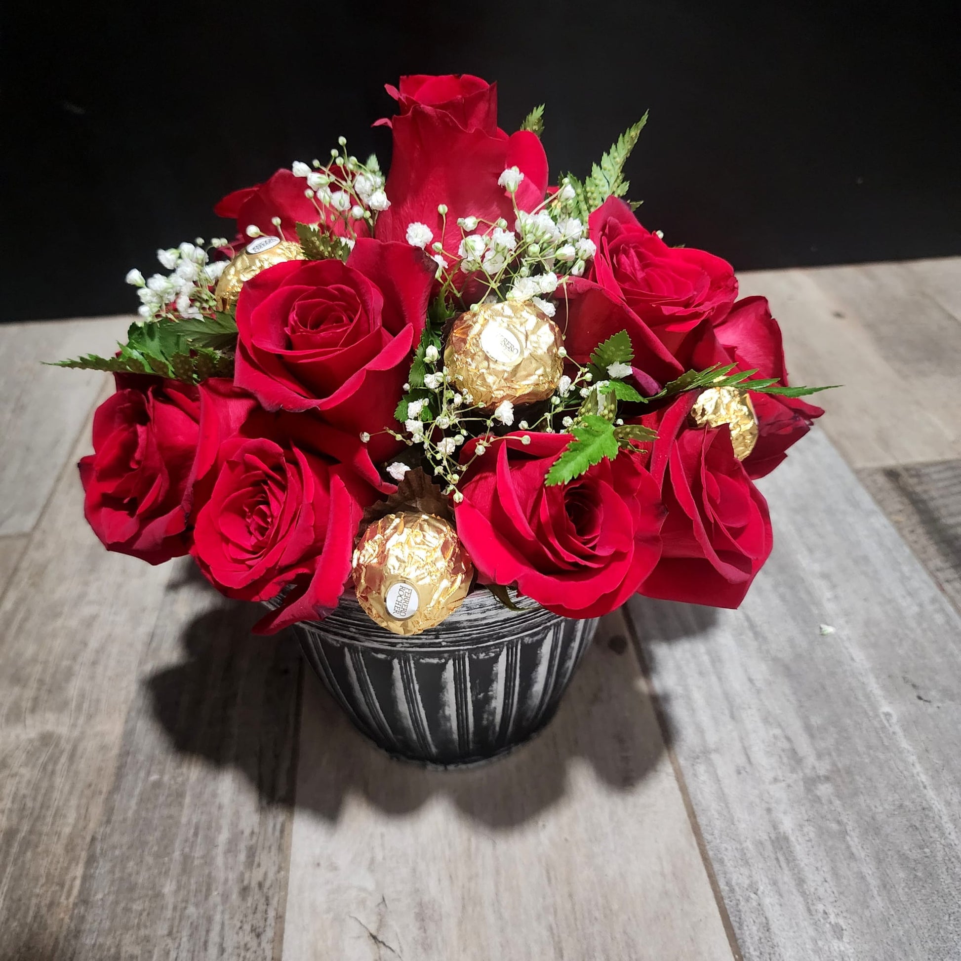 Arreglo de rosas que puedes escoger entre rojas, rosas o mixtas. y chocolates