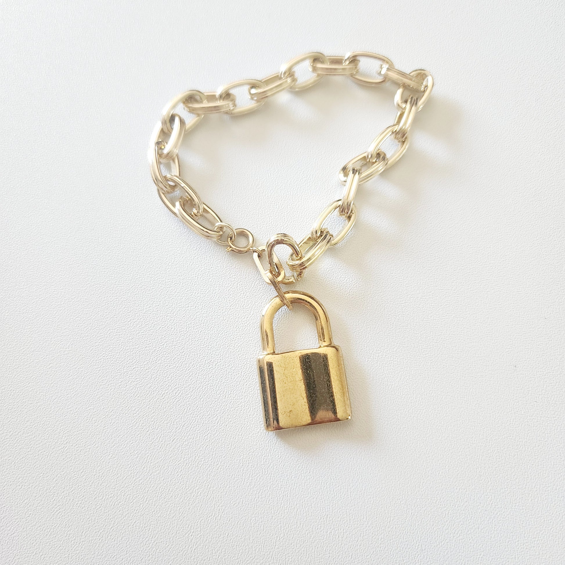 ¡Añade un toque de estilo a tu look con nuestra hermosa pulsera candado en color dorado! Hecha de alta calidad y con un delicado diseño de joyería, esta pulsera es perfecta para cualquier ocasión. ¡Luce elegante y segura con esta pulsera candado!