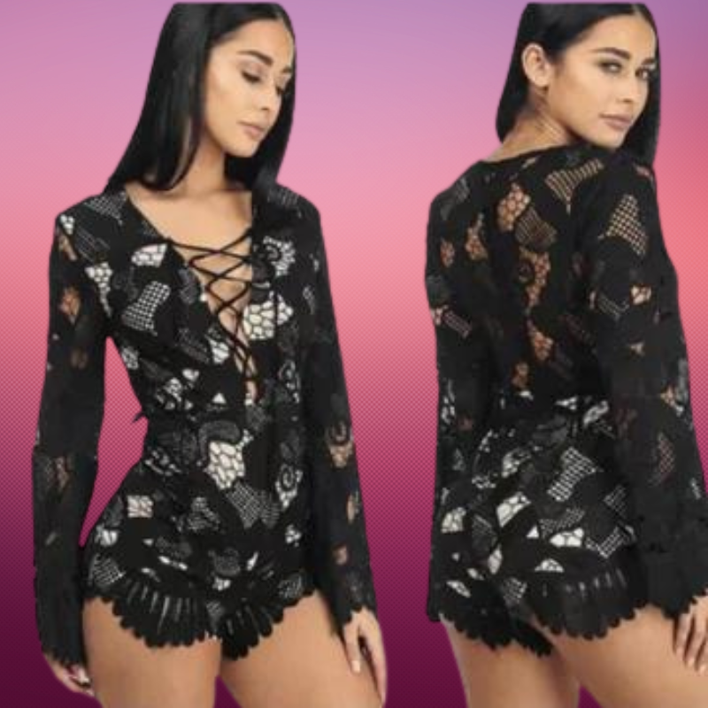 Bodysuit de encaje negro. puedes usarlo para salir. Forrado