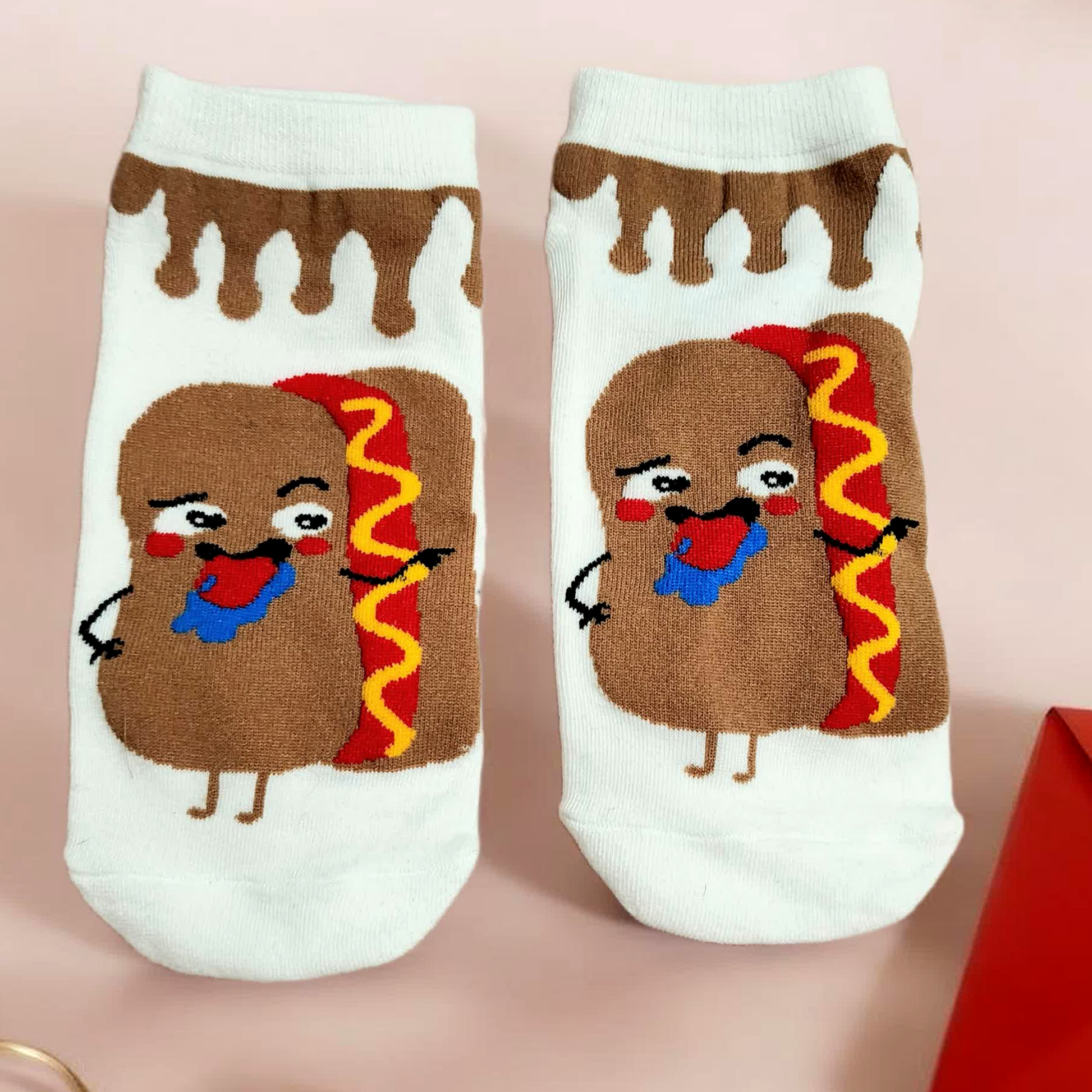 ¡Agrega diversión a tu vestimenta diaria con nuestras medias cortas estampadas de hot dog sonriente! Perfectas para toda la familia, estas medias te harán sonreír cada vez que las uses. ¡Haz una declaración de estilo única y divertida con Hot Dog Medias Divertidas!