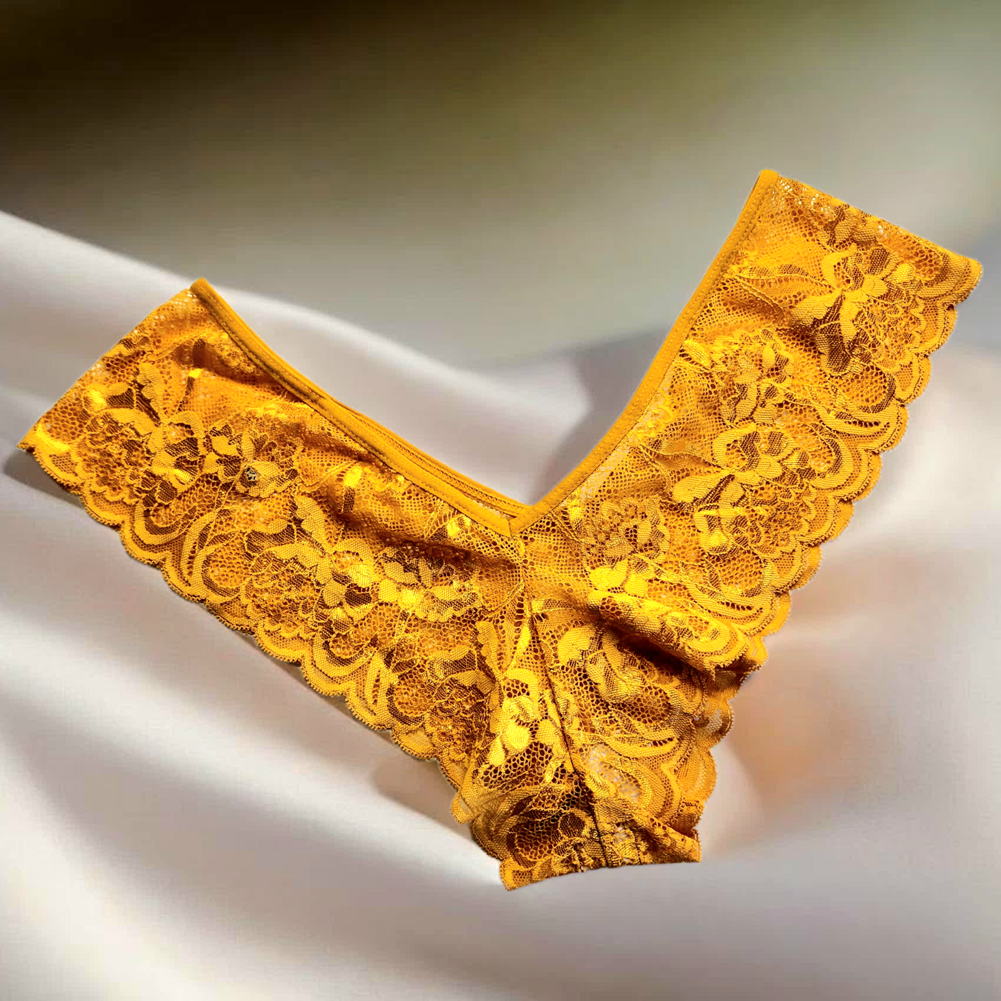 Pantie V en encaje color dorada
