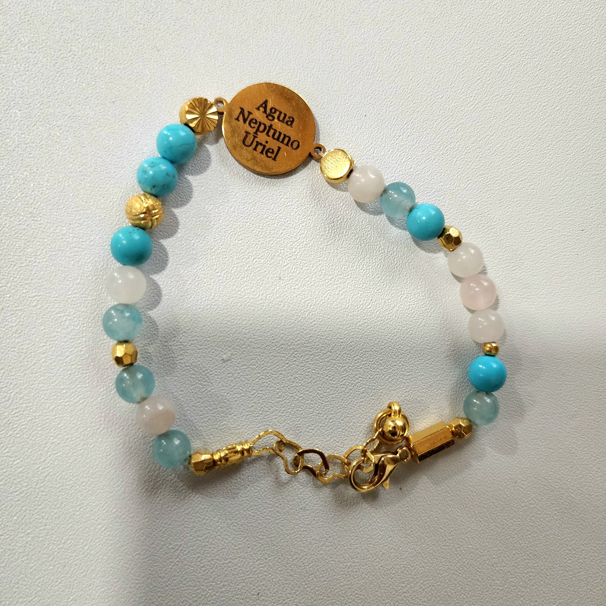 ¡Lleva contigo la fuerza y la belleza de las piedras naturales con la Pulsera de Piscis! Hecha con las piedras de tu signo, incluye una medallita grabada con la esencia de Piscis, su elemento agua, su ángel guardián y su planeta Neptuno. ¡Siente la conexión con tu signo y potencia tu energía!