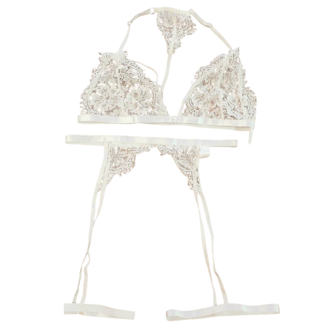 Nuestro Set de Sostenedor de encaje blanco de dos piezas es la mejor opción para alcanzar un look de lujo y moderno. ¡Construido con suaves y suaves encajes blancos, este sostenedor es una excelente manera de agregar un toque de refinamiento a tu vestimenta!