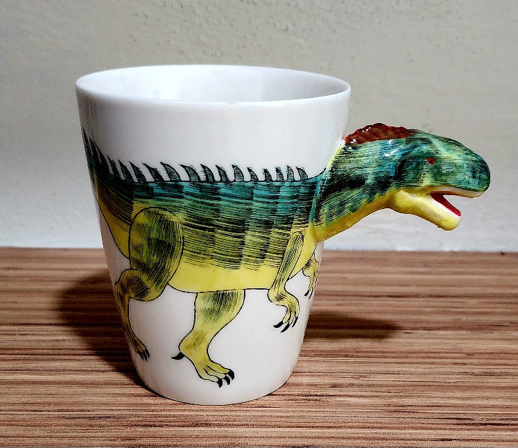 Disfruta de tu bebida favorita en nuestra divertida Taza Dino. Hecha de porcelana, su mango en forma de dinosaurio y su cuerpo pintado hará que cada sorbo sea una aventura. Perfecta para agregar diversión a tu día!